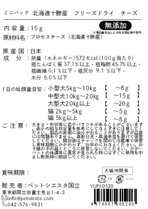 | 素材 | プロセスチーズ(北海道十勝産) |