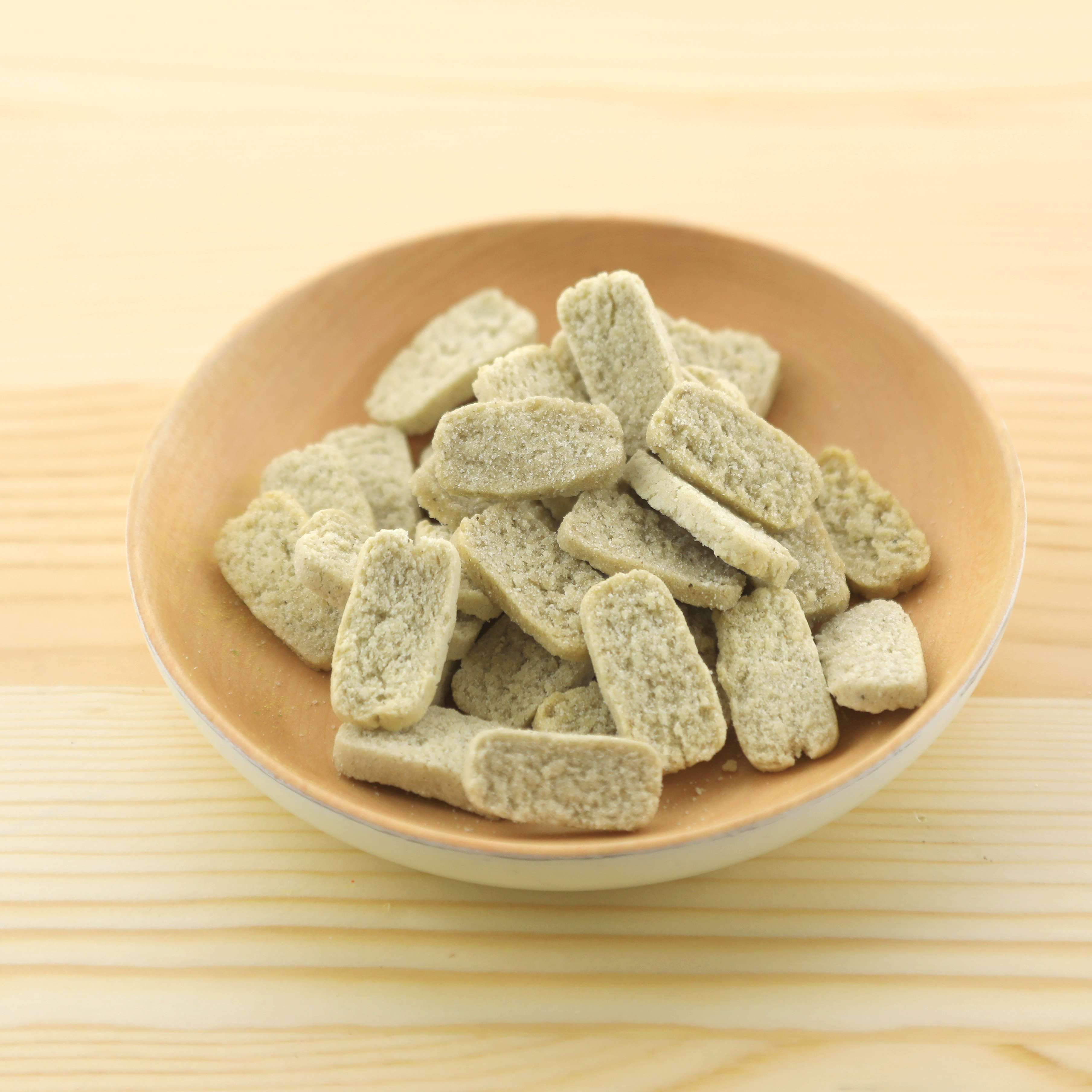 | 注意事項 | 製造工程上、焼き色・形状・サイズ・硬さ・色味等若干異なることがございます。表示の給与目安量を参考にして与えすぎに注意してください。無添加のため照明などの光によって退色する可能性がありますが、品質には問題ありません。開封後はチャックを閉めて直射日光・高温多湿を避け常温保管し賞味期限にかかわらず、お早めにお与えください。お子様の手の届くところに保管しないでください。万が一ペットの体調等に異常が見られた時にはすぐに使用を中止し獣医師に相談してください。 |