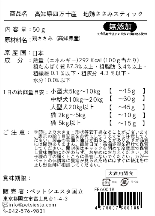 | 素材 | 鶏ささみ(高知県産) |
