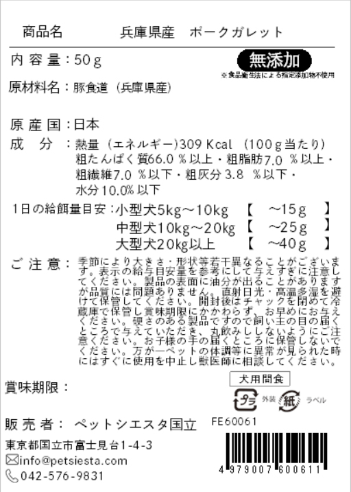 兵庫県産 ポークガレット 50g