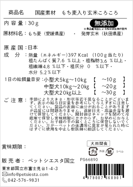 国産素材 もち麦入り玄米ころころ 30g