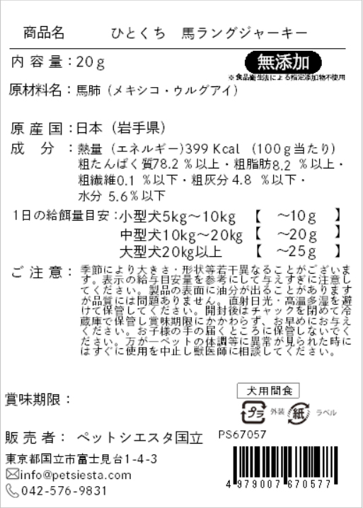 ひとくち 馬ラングジャーキー 20g