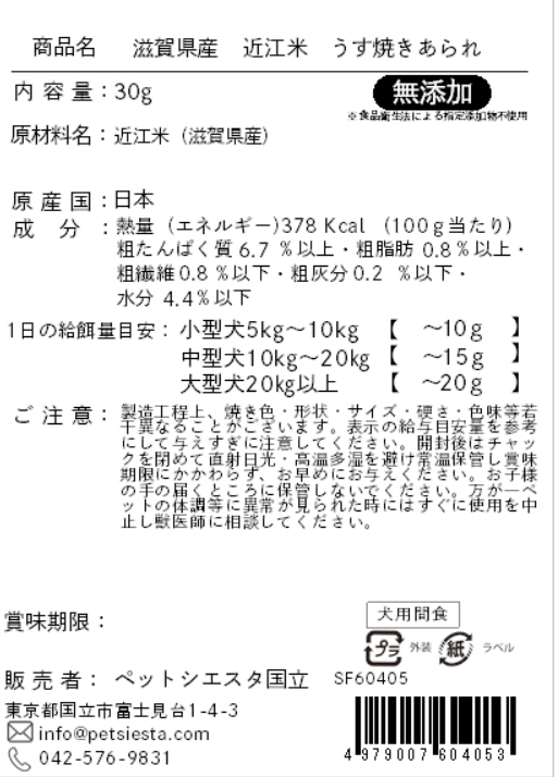 滋賀県産 近江米 うす焼きあられ 30g