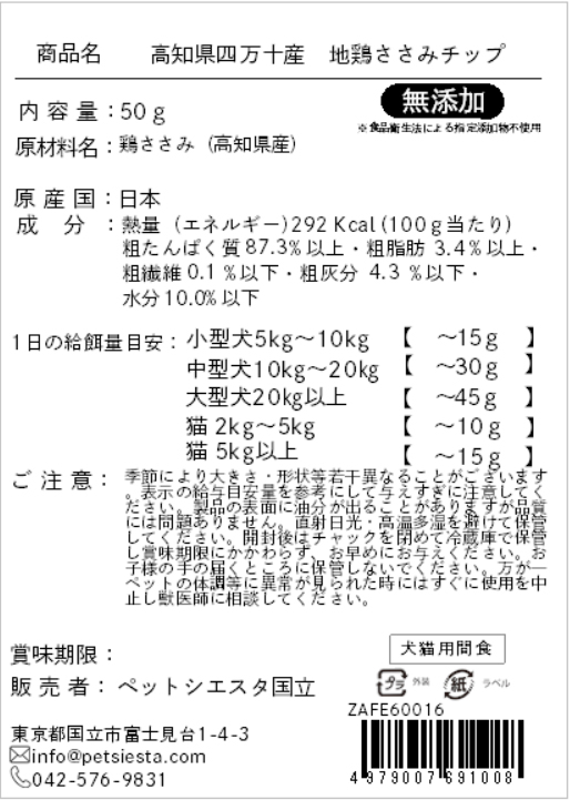 | 素材 | 鶏ささみ(高知県産) |