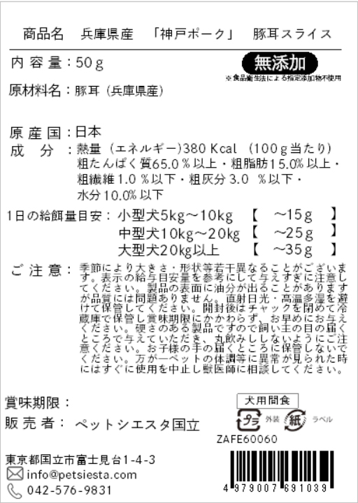 | 素材 | 豚耳(兵庫県産) |