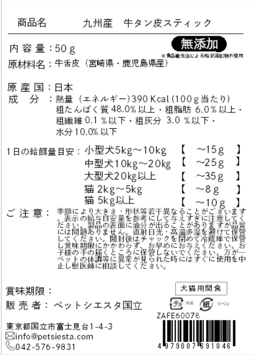 | 注意事項 | 個体により大きさ・形状等若干異なることがございます。表示の給与目安量を参考にして与えすぎに注意してください。製品の表面に油分が出ることがありますが品質には問題ありません。直射日光・高温多湿を避けて保管してください。開封後はチャックを閉めて冷蔵庫で保管し賞味期限にかかわらず、お早めにお与えください。お子様の手の届くところに保管しないでください。万が一ペットの体調等に異常が見られた時にはすぐに使用を中止し獣医師に相談してください。 |