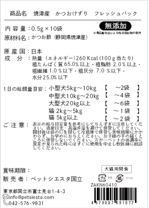 (表面無地)焼津産 かつおけずり フレッシュパック 0.5g×10袋