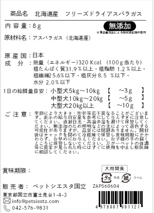 (表面無地)北海道産 フリーズドライアスパラガス 8g