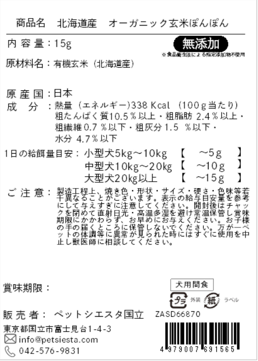 | 素材 | 有機玄米(北海道産) |