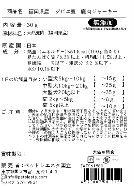 | 素材 | 天然鹿肉(福岡県産) |